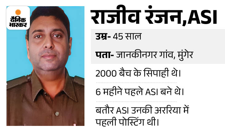 ਪੁਲਿਸ ਟੀਮ, ਜੋ ਅਰੀਆ ਵਿੱਚ ਅਪਰਾਧੀਆਂ ਨੂੰ ਫੜਨ ਗਈ ਸੀ, ਤੇ ਹਮਲਾ ਕੀਤਾ ਗਿਆ. ਇਸ ਵਿਚ ਏਐਸਆਈ ਰਾਜੀਵ ਰੰਜਨ ਨੇ ਫੂਲਕਾਹ ਥਾਣੇ ਤੇ ਪੋਸਟ ਕੀਤਾ ਗਿਆ. ਬੁੱਧਵਾਰ ਨੂੰ ਮਰ ਗਿਆ. ਬੁੱਧਵਾਰ ਨੂੰ ਪੁਲਿਸ ਦੀ ਟੀਮ ਫਾਲਕਹਾ ਬਾਜ਼ਾਰ ਵਿੱਚ ਛਾਪੇਮਾਰੀ ਕਰਨ ਗਈ.