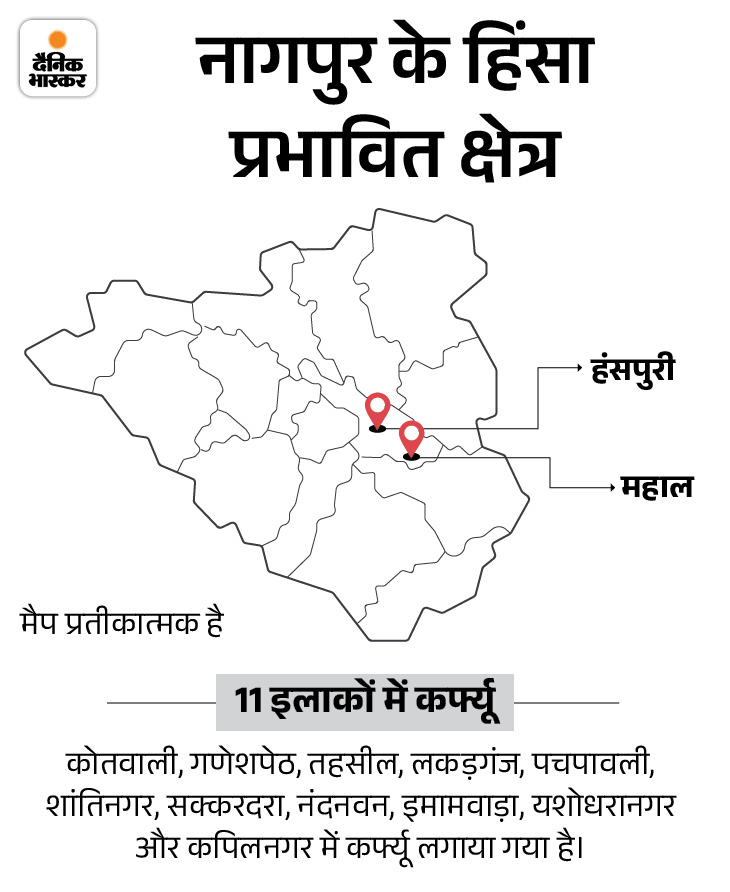 ਨਾਗਪੁਰ ਹਿੰਸਾ ਤੋਂ ਬਾਅਦ 11 ਖੇਤਰਾਂ ਵਿੱਚ ਕਰਫਿ. ਮੰਗਲਵਾਰ ਨੂੰ 11 ਖੇਤਰਾਂ ਵਿੱਚ ਕਰਫਿ loved ਲਾਂ ਨੂੰ 11 ਖੇਤਰਾਂ ਵਿੱਚ ਲਗਾਇਆ ਗਿਆ ਹੈ ਜਦੋਂ ਕਿ ਨਾਗਪੁਰ ਵਿੱਚ Aurg ਰੰਗਜ਼ੇਬ ਜਲਣ ਵਾਲੇ ਪੁਦੇ ਦੇ ਕਾਰਨ ਹੋਈ ਹਿੰਸਾ ਹੋਈ ਸੀ.
