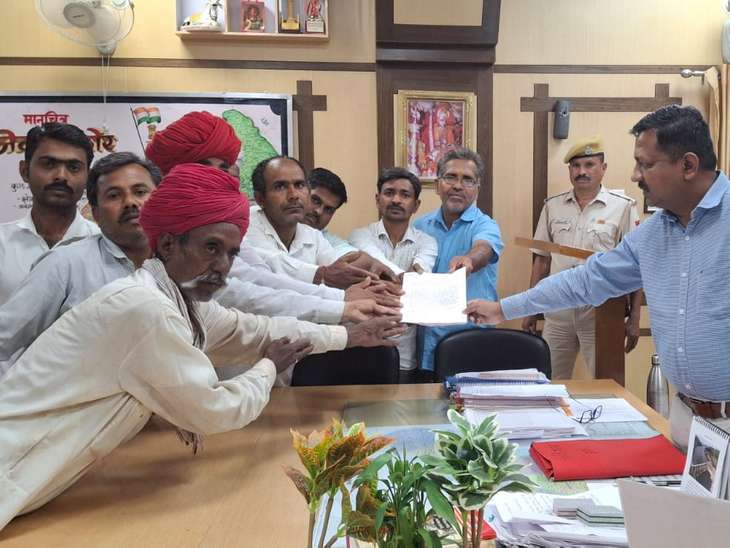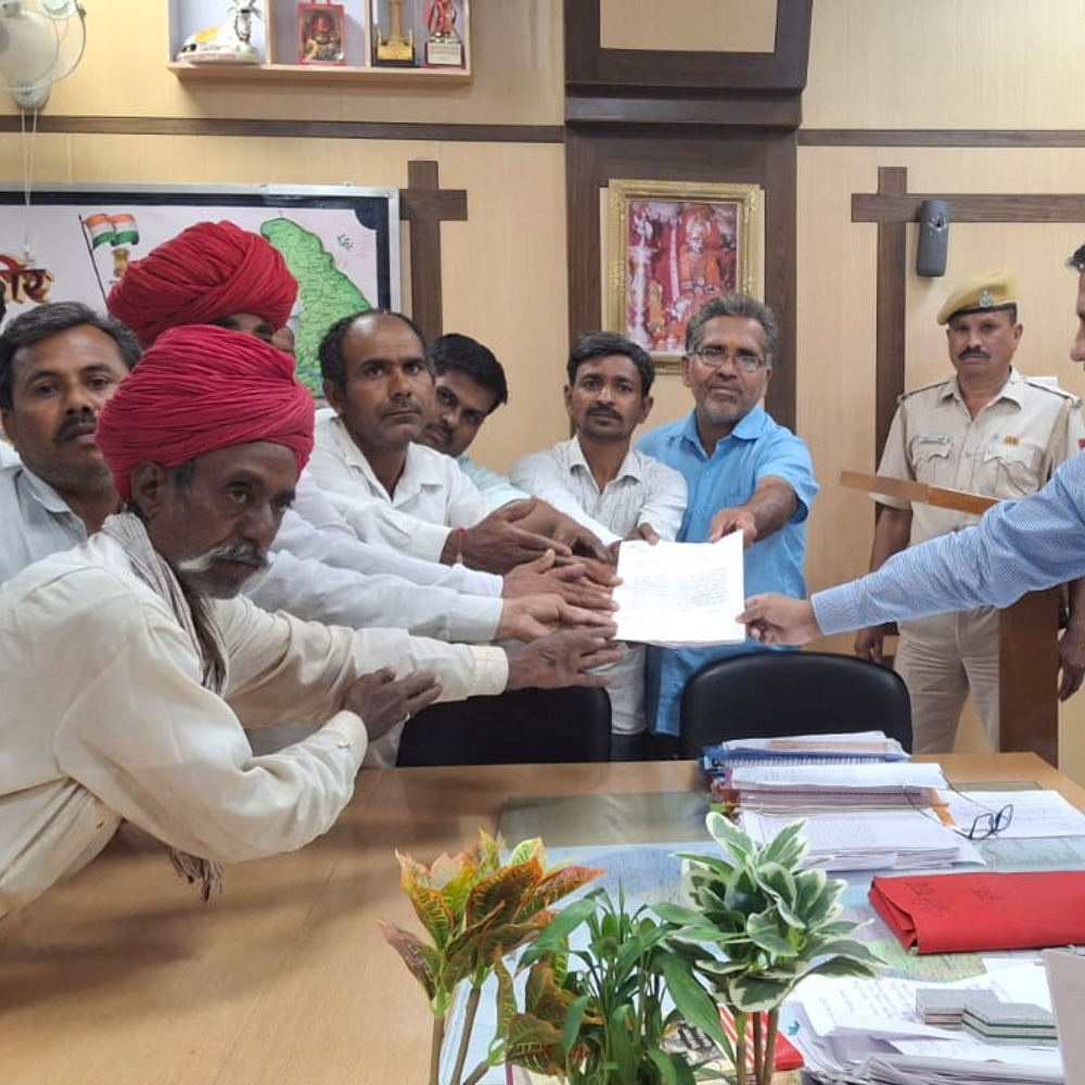 कलेक्टर को ज्ञापन को संभालने वाले ग्रामीण