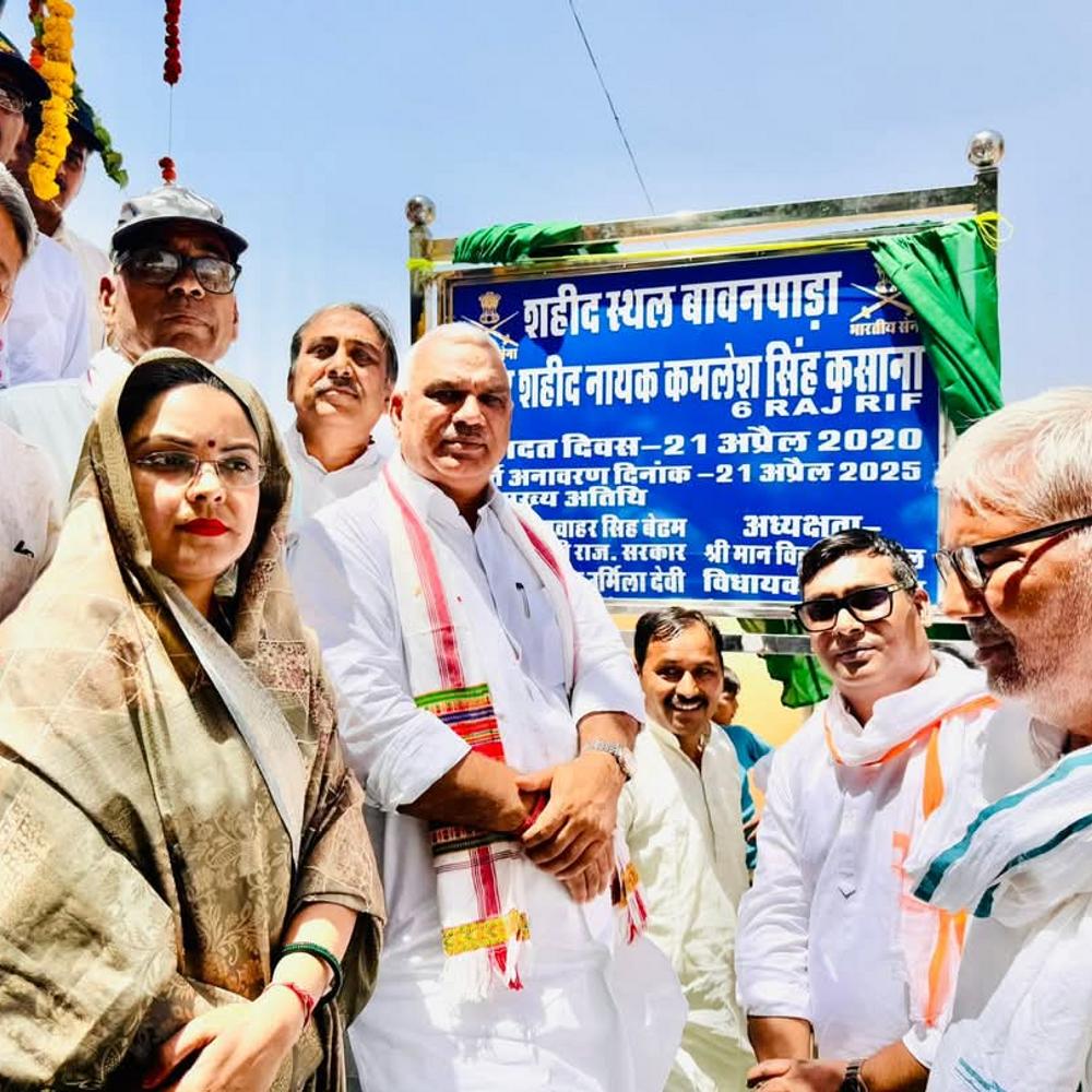 गृह राज्य मंत्री जवाहर सिंह बेदम ने सोमवार को दौसा जिले के सिकंद्रा क्षेत्र का दौरा किया, जहां उन्होंने बावनापदा गांव के शहीद कामलेश सिंह कसाना की प्रतिमा का अनावरण किया। इस समय के दौरान, गृह मामलों के राज्य मंत्री, शहीद के माता -पिता और उनकी वीर पत्नी उर्मिला देव