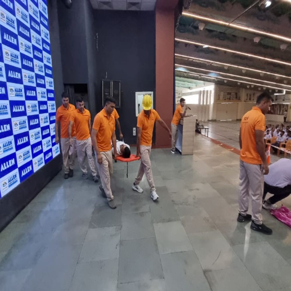 राज्य आपदा रिस्पांस फंड (एसडीआरएफ) के स्वयंसेवकों ने एलन कोचिंग परिसर में सभी कर्मचारियों को युद्ध की स्थिति में खुद को आत्म -निष्ठा और सुरक्षा उपाय बताने के लिए कहा और एक -दूसरे की मदद करने के लिए एक डेमो दिया। , हवा की हड़ताल होने पर अपने आप को कैसे बचाएं। ब्लैक आउट पोजीशन
