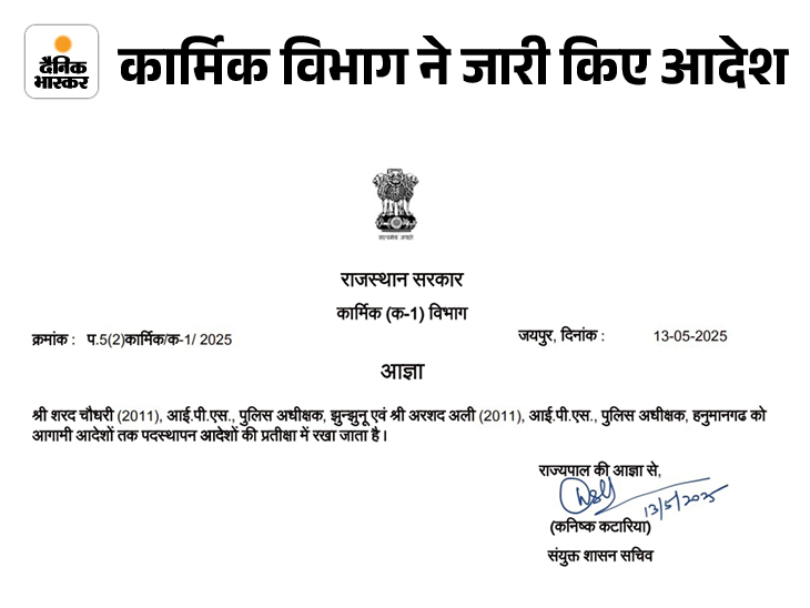 राज्य सरकार ने झुनझुनु और हनुमंगढ़ के एसपी को एपो को हटा दिया है। कर्मियों के विभाग ने झुनझुनु एसपी शरद चौधरी और हनुमंगढ़ एसपी अरशद अली को एपीओ को आदेश जारी किए हैं। दोनों जिलों में एसपी के पद पर किसी भी अधिकारी को पोस्टिंग नहीं दी गई है।