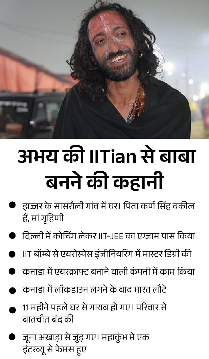 ਮਹਾਕੁੰਭ ਦਾ IITian ਬਾਬਾ ਹਰਿਆਣਾ ਦਾ ਰਹਿਣ ਵਾਲਾ: ਏਰੋਸਪੇਸ ਇੰਜੀਨੀਅਰਿੰਗ ਦੀ ਪੜ੍ਹਾਈ, ਕੈਨੇਡਾ ‘ਚ ਛੱਡੀ 3 ਲੱਖ ਦੀ ਨੌਕਰੀ, 6 ਮਹੀਨੇ ਪਹਿਲਾਂ ਪਰਿਵਾਰ ਨਾਲੋਂ ਟੁੱਟਿਆ ਸੰਪਰਕ