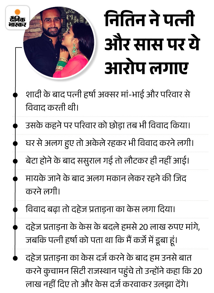 ਬੇਟਾ ਹੋਣ ਤੋਂ ਬਾਅਦ ਵੱਖ ਰਹਿਣ ਲਈ ਦਬਾਅ ਪਾਇਆ ਹਰਸ਼ ਦੀ ਇੱਛਾ ਪੂਰੀ ਕਰਨ ਲਈ ਮੈਂ ਵਪਾਰ ਲਈ ਕਰਜ਼ਾ ਲਿਆ। ਪਰ ਇਸ ਵਿੱਚ ਨੁਕਸਾਨ ਸੀ। ਇਸ ਤੋਂ ਬਾਅਦ ਉਸ ਨੇ ਇੱਕ ਹੋਰ ਕਰਜ਼ਾ ਲਿਆ ਅਤੇ ਉਸ ਵਿੱਚ ਵੀ ਨੁਕਸਾਨ ਹੋਇਆ। ਲੜਾਈ ਤੋਂ ਬਾਅਦ ਹਰਸ਼ਾ 4 ਮਾਰਚ 2023 ਨੂੰ ਸਵੇਰੇ 6 ਵਜੇ ਆਪਣੀ ਵੱਡੀ ਭੈਣ ਮੀਨਾਕਸ਼ੀ ਨਾਲ ਜੋਧਪੁਰ ਸਥਿਤ ਆਪਣੇ ਪੇਕੇ ਘਰ ਚਲੀ ਗਈ। ਕੁਝ ਮਹੀਨਿਆਂ ਬਾਅਦ ਮੈਂ ਉਸ ਨੂੰ ਕਿਹਾ ਕਿ ਮੈਨੂੰ ਮੇਰੇ ਬੇਟੇ ਹਨੀ ਦੀ ਯਾਦ ਆ ਰਹੀ ਹੈ, ਤੁਸੀਂ ਘਰ ਆ ਜਾਓ।