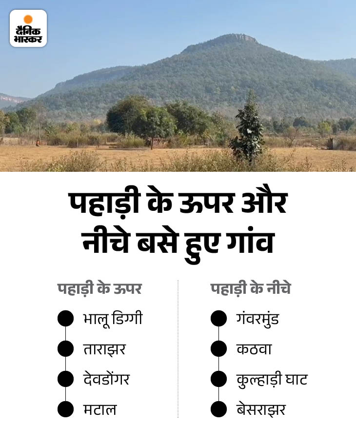 ਇਸ ਤੋਂ ਇਲਾਵਾ ਤਿੰਨ ਪਿੰਡ ਪਹਾੜੀ ਦੇ ਹੇਠਾਂ ਸਥਿਤ ਹਨ। ਮੁੱਠਭੇੜ ਤੋਂ ਬਾਅਦ ਵਾਪਸ ਪਰਤਣ ਵਾਲੇ ਸਥਾਨਕ ਪਿੰਡ ਵਾਸੀਆਂ ਅਤੇ ਸੈਨਿਕਾਂ ਨੇ ਕਿਹਾ, ਆਮ ਤੌਰ ‘ਤੇ: ਇਨ੍ਹਾਂ ਪਿੰਡਾਂ ਦੇ ਉੱਪਰ ਪਹਾੜੀ ਦੇ ਹਿੱਸੇ ‘ਤੇ ਨਕਸਲੀ ਲਹਿਰ ਦੇ ਨਿਸ਼ਾਨ ਹਨ। ਜਿੱਥੇ ਵੱਡੇ-ਵੱਡੇ ਟੋਏ ਅਤੇ ਕਈ ਪਾਣੀ ਦੇ ਸੋਮੇ ਹਨ।