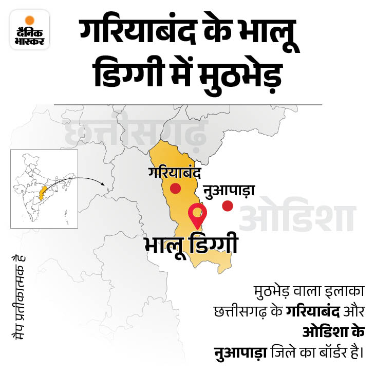 ਛੱਤੀਸਗੜ੍ਹ ਵਿੱਚ, ਗਰਿਆਬੰਦ ਜ਼ਿਲ੍ਹੇ ਦੀ ਕੁਲਹੜੀ ਘਾਟ ਪੰਚਾਇਤ ਦੇ ਭਲੂ ਡਿਗੀ ਟੋਲਾ ਦੇ ਜੰਗਲ ਵਿੱਚ ਫੋਰਸ ਨੇ 27 ਨਕਸਲੀਆਂ ਨੂੰ ਮਾਰ ਦਿੱਤਾ। ਨਕਸਲੀ ਭੋਜਨ ਦੀ ਭਾਲ ਵਿੱਚ ਪਿੰਡ ਦੇ ਨੇੜੇ ਆਏ ਸਨ। ਇਸ ਦੌਰਾਨ ਫੋਰਸ ਨੇ ਉਨ੍ਹਾਂ ਨੂੰ ਤਿਕੋਣ ਆਕਾਰ ਦੇ ਘੇਰੇ ਵਿਚ ਲੈ ਲਿਆ। ਪਹਾੜੀ ‘ਤੇ ਕੁਹਾੜੀ