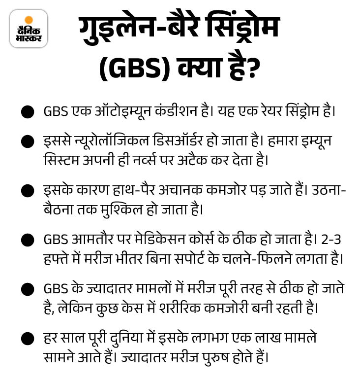ਜੀਬੀਐਸ ਇੱਕ ਸਵੈ-ਇਮਿ un ਨ ਸਥਿਤੀ ਹੈ. ਇਸ ਵਿੱਚ, ਸਾਡੀ ਇਮਿ .ਨ ਸਿਸਟਮ ਆਪਣੀਆਂ ਨਾੜੀਆਂ ਤੇ ਹਮਲਾ ਕਰਦਾ ਹੈ. ਇਹ ਤੰਤੂ ਵਿਗਾੜ ਦਾ ਕਾਰਨ ਬਣਦਾ ਹੈ. ਇਸ ਦੇ ਕਾਰਨ, ਹੱਥ ਅਤੇ ਪੈਰ ਅਚਾਨਕ ਕਮਜ਼ੋਰ ਹੋ ਗਏ. ਇਹ ਉੱਠ ਕੇ ਬੈਠਣਾ ਮੁਸ਼ਕਲ ਹੋ ਜਾਂਦਾ ਹੈ. ਇਹ ਇਕ ਦੁਰਲੱਭ ਸਿੰਡਰੋਮ ਹੈ. ਹਰ ਸਾਲ ਦੁਨੀਆ ਵਿਚ ਲਗਭਗ ਇਕ ਲੱਖ ਕੇਸ ਹੁੰਦੇ ਹਨ. ਪੂਰੀ ਖ਼ਬਰਾਂ ਪੜ੍ਹੋ …
