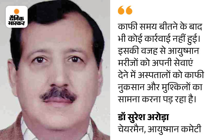 ਅਯੁਸ਼ਮਾਨ ਕਮੇਟੀ ਦੇ ਚੇਅਰਮੈਨ ਡਾ. ਸੁਰੇਸ਼ ਅਰੋੜਾ ਕਹਿੰਦਾ ਹੈ ਕਿ ਜੇ ਸਰਕਾਰ ਤੁਰੰਤ ਇਸ ਸਮੱਸਿਆ ਦਾ ਸਿਖਾਉਣ ਲਈ ਕੋਈ ਠੋਸ ਕਦਮ ਨਹੀਂ ਚੁੱਕਦੀ, ਤਾਂ ਸਾਰੇ ਆਇਯੁਸ਼ਮੈਨ ਹਸਪਤਾਲਾਂ ਨੂੰ ਆਪਣੀਆਂ ਸੇਵਾਵਾਂ ਮੁਲਤਵੀ ਕਰਨਾ ਪਏਗਾ. ਜੇ ਸਮੱਸਿਆਵਾਂ ਦਾ ਹੱਲ ਨਾ ਹੋਣ ‘ਤਾਂ ਕਿਸੇ ਵੀ ਫੈਸਲੇ ਲਈ ਸਾਰੇ ਹਸਪਤਾਲਾਂ’ ਤੇ ਦਸਤਖਤ ਕੀਤੇ ਗਏ ਹਨ.