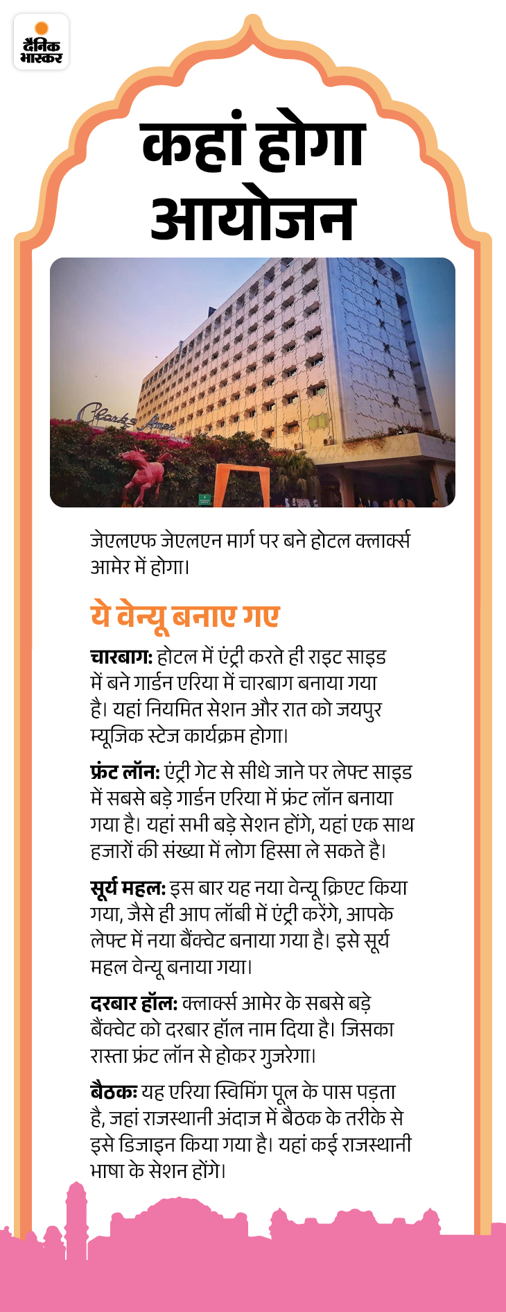 ਜੈਪੁਰ ਸਾਹਿਤ ਦਾ ਤਿਉਹਾਰ (ਜੇਲਫ) ਜੋ ਇਸ ਵਾਰ ਮਾਨਤਾ ਪ੍ਰਾਪਤ ਹੈ, 30 ਜਨਵਰੀ ਤੋਂ ਸ਼ੁਰੂ ਹੋਵੇਗਾ. ਪੰਜ ਦਿਨਾਂ ਦਾ ਤਿਉਹਾਰ 3 ਫਰਵਰੀ ਤੱਕ ਹੋਟਲ ਕਲਾਰਕਸ ਹਮਰਮ ਵਿਖੇ ਹੋਵੇਗਾ.
