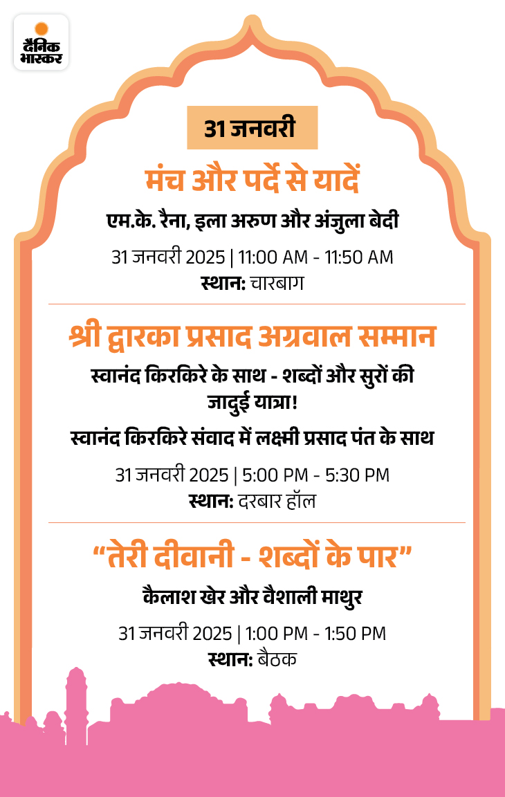 ਅੱਗੇ ਦੇਖੋ, ਜੈਪੁਰ ਸਾਹਿਤ ਫੈਸਟੀਵਲ ਲਈ ਤਿਆਰੀ ਦੀਆਂ ਫੋਟੋਆਂ …