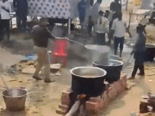 प्रयागराज के सोरांव थाना क्षेत्र में पुलिस इंस्पेक्टर ब्रजेश तिवारी ने श्रद्धालुओं के लिए बन रहे भोजन पर बालू डाल कर खराब कर दिया है।