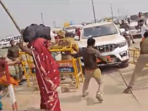 मेले में पुलिस और साधु की झड़प का वीडियो सामने आया है। इस वीडियो में पुलिस साधुओं की गाड़ी बैरियर पर रोक रही है, लेकिन वे जबर्दस्ती अंदर घुसना चाह रहे हैं। एक साधु द्वारा झड़प के दौरान बैरिकेड्स को नीचे गिरा दिया गया और उनका ड्राइवर गाड़ी लेकर बैरिकेड्स को घसीटकर आगे बढ़ गया। पुलिसकर्मी ने कहा कि अफसरों से बात करो, बिना परमिशन गाड़ी अंदर नहीं जाएगी। इसे लेकर पुलिसकर्मियों की उनसे तीखी नोकझोंक हुई।