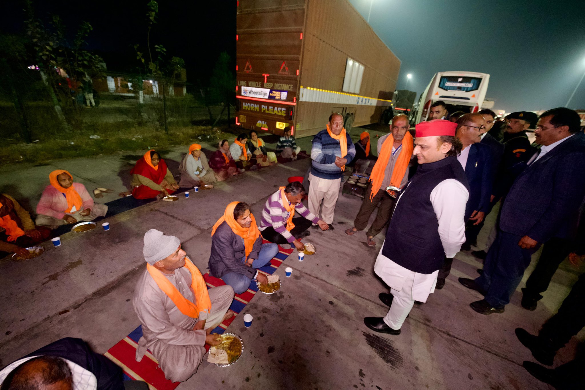 आधी रात महाकुंभ जाने-लौटने वाले श्रद्धालुओं से मिले अखिलेश