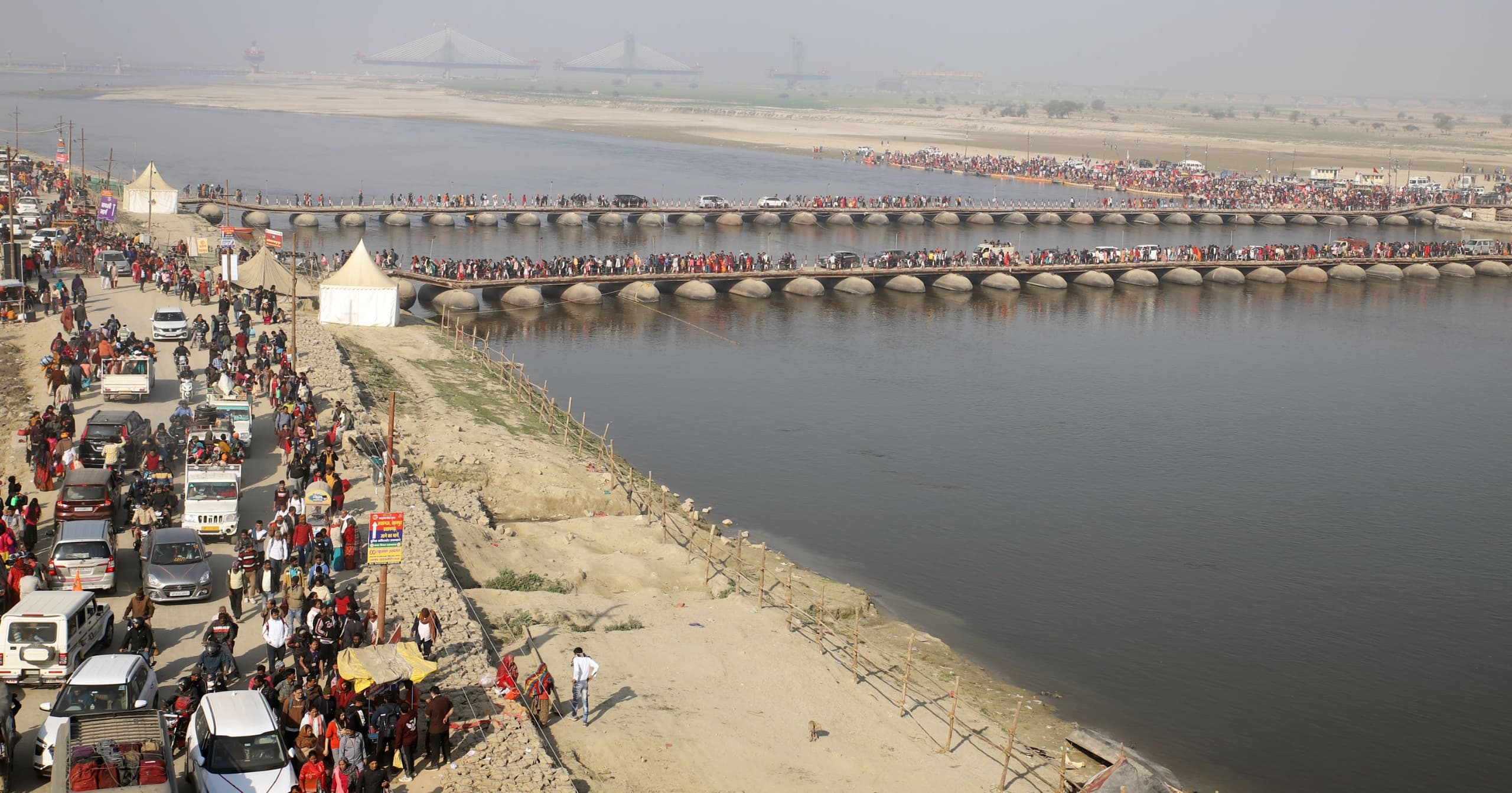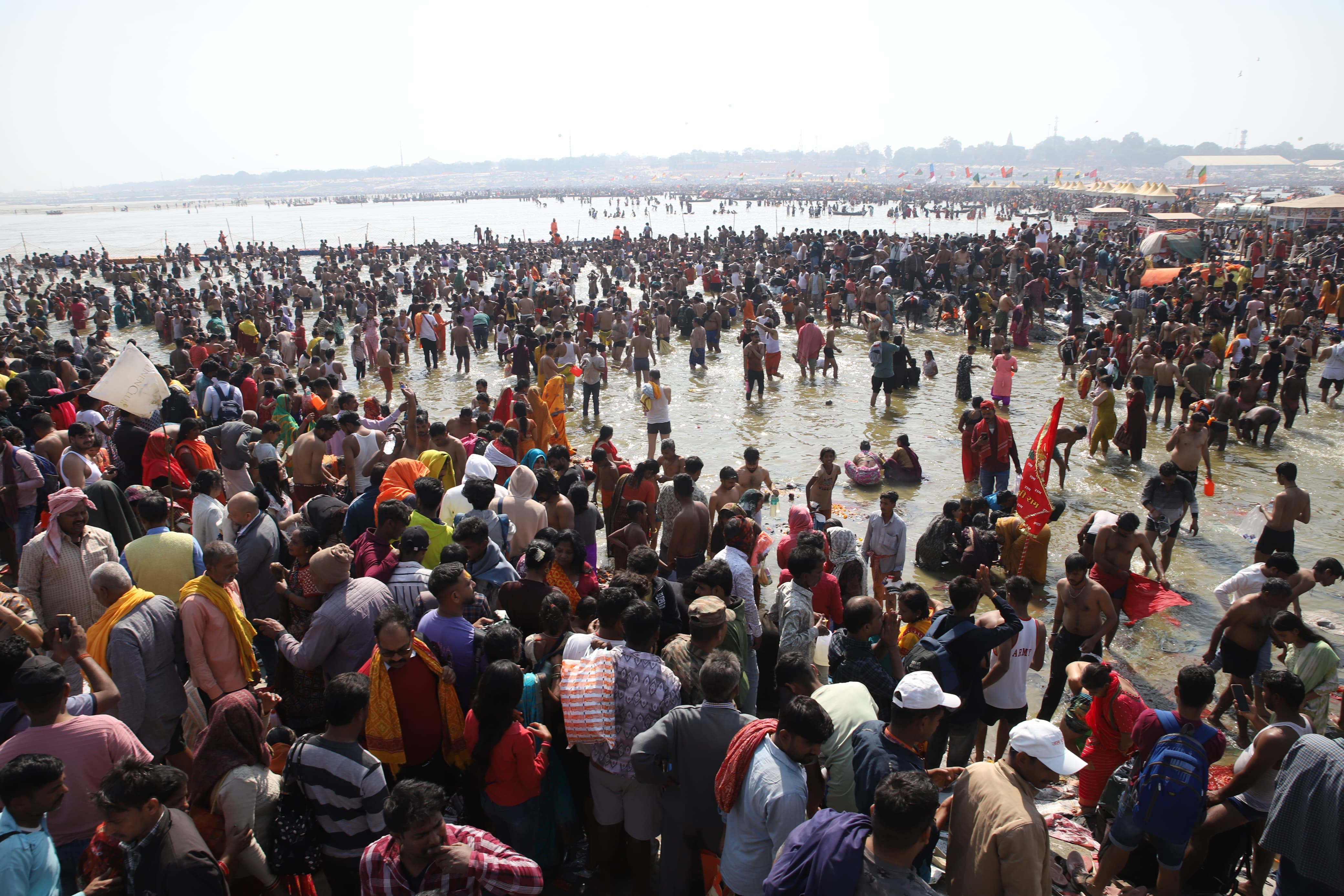 संगम घाट पर भीड़ की 4 तस्वीरें
