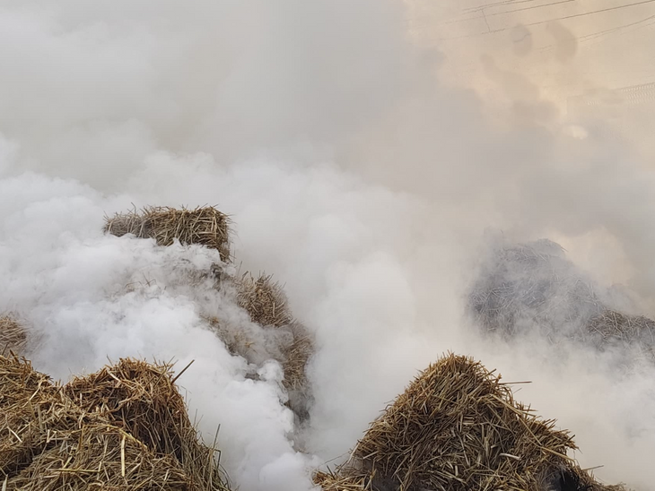 झुनझुनु के पिपली चौक में सोमवार दोपहर एक बड़ी दुर्घटना हुई। स्ट्रॉ से भरा ट्रैक्टर-ट्रॉली ऊंचाई रेखा से टकरा गया था। चिंगारी से भूसे में एक भयंकर आग लग गई। धुएं के चारों ओर हावी था। आकाश में एक धुआं था।