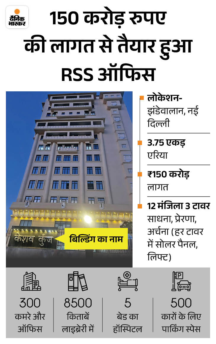 ਰਾਸ਼ਟਰੀ ਸਵੈਮ ਸੇਵਕ ਸੰਘ (ਆਰਐਸਐਸ) ਦਿੱਲੀ ਦਫਤਰ ‘ਕੇਸ਼ਵ ਕੁੰਜ’ ਨਵੀਂ ਇਮਾਰਤ ਵਜੋਂ ਤਿਆਰ ਕੀਤਾ ਗਿਆ ਹੈ. ਸੰਘ ਇਥੇ 1962 ਤੋਂ ਇਥੇ ਕੰਮ ਕਰ ਰਹੀ ਹੈ. ਨਵੀਂ ਇਮਾਰਤ 2018 ਵਿੱਚ ਸ਼ੁਰੂ ਹੋਈ, ਜੋ 8 ਸਾਲਾਂ ਬਾਅਦ ਪੂਰਾ ਹੋਣ ਵਾਲਾ ਹੈ.