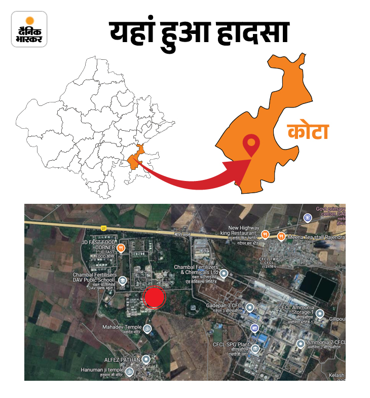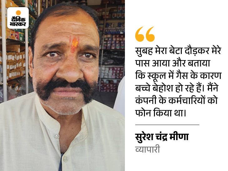 बेटे ने कहा- पापा गैस के साथ बच्चों को बेहोश कर रहा है स्कूल के पास एक किराने की दुकान चलाने वाले सुरेश चंद्र मीना ने कहा- गैस सुबह 7:30 बजे से जारी की जा रही थी। मेरा घर भी यहाँ है। मुझे भी घुटन महसूस हुई। बच्चों ने स्कूल जाने से पहले यह भी कहा था कि गैस स्मेल आ रही है। इसके बाद, मेरा बेटा लगभग 10:30 बजे दौड़ता रहा। कहा- पापा गैस लीक कर रहा है। स्कूल में बच्चे बेहोश हैं। मैंने तुरंत CFCL के एक कर्मचारी को बुलाया। मैंने उससे कहा कि बच्चे बेहोशी कर रहे हैं, इसे रोकें। क्या बच्चे या ग्रामीण मरेंगे, तो क्या आप रुकेंगे?