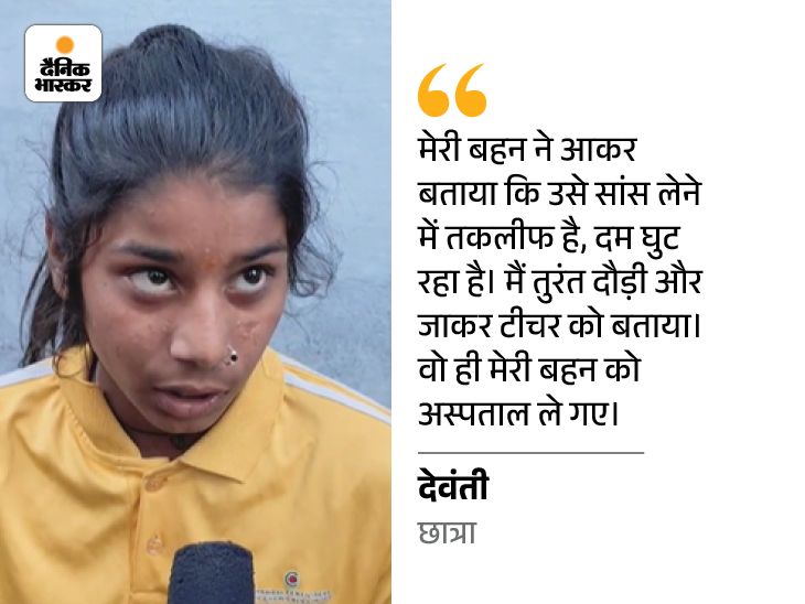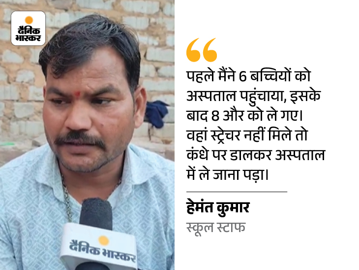 अचेतन लड़कियों को देखकर, बाकी बच्चे घबराए हुए थे। पहले 6 लड़कियों को अस्पताल ले गया। इसके बाद 8 और लड़कियां गिर गईं। उन्हें अस्पताल भी ले जाया गया। अस्पताल में स्ट्रेचर भी नहीं मिला। -हमंत कुमार, स्कूल स्टाफ