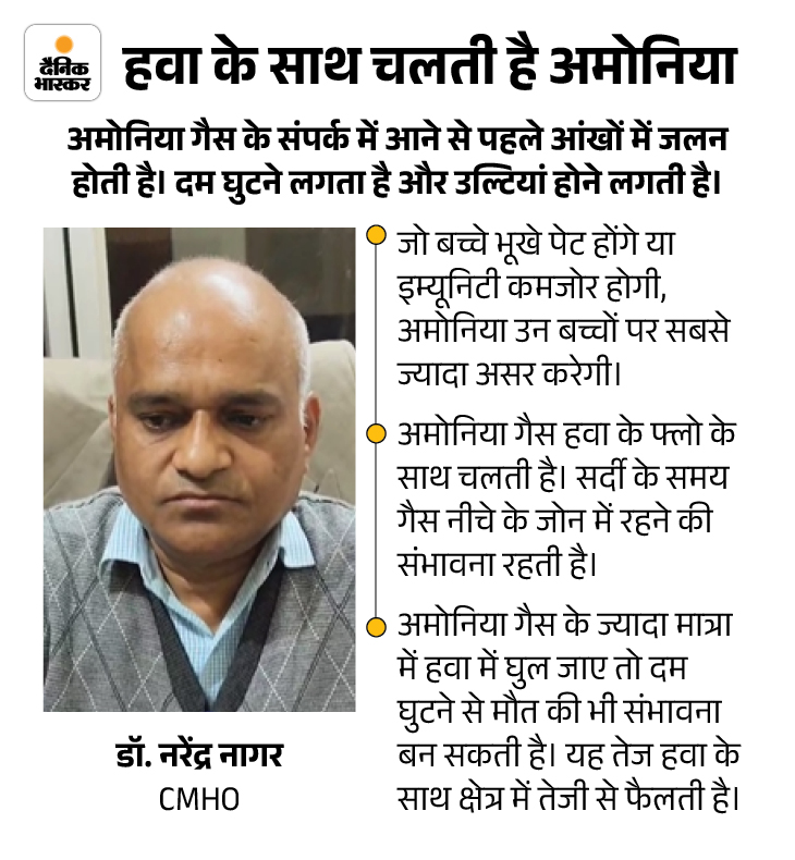 जैसे ही खिड़कियां खुल गईं भाजपा किसान मोर्चा मंडल के अध्यक्ष और पूर्व सरपंच बुदी प्रकाश मीना ने कहा- स्कूल भी पहली मंजिल पर है। जैसे ही दूसरी पारी में आई लड़कियों ने स्कूल के कमरे की खिड़कियां खोली, अमोनिया का भाका अंदर आ गया। इसके बाद, गले के जाम, आंखों की जलन की समस्या थी।