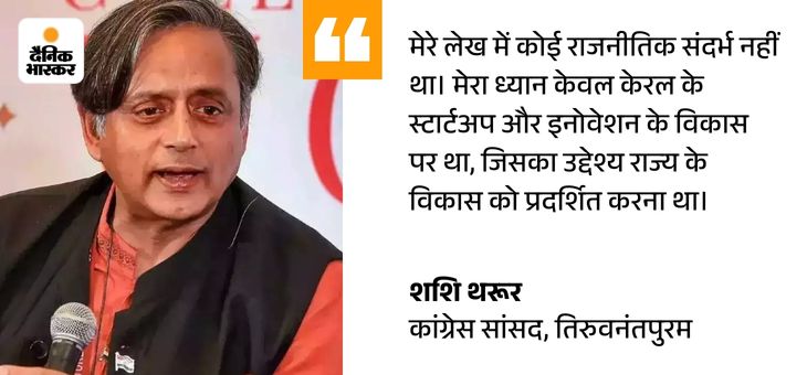 ਉਸਨੇ ਕਿਹਾ ਸੀ- ਮੈਂ ਇਸ ਦੀ ਇਕ ਭਾਰਤੀ ਕਮਰੇ ਵਿਚ ਇਸ ਦੀ ਕਦਰ ਕਰਦਾ ਹਾਂ. ਇਸ ਵਿਸ਼ੇਸ਼ ਕੇਸ ਵਿੱਚ, ਮੈਂ ਪੂਰੀ ਤਰ੍ਹਾਂ ਰਾਸ਼ਟਰੀ ਹਿੱਤ ਵਿੱਚ ਬੋਲ ਰਿਹਾ ਹਾਂ. ਅਸੀਂ ਹਮੇਸ਼ਾਂ ਸਿਰਫ ਪਾਰਟੀ ਹਿੱਤ ਦੇ ਮਾਮਲੇ ਵਿਚ ਗੱਲ ਨਹੀਂ ਕਰ ਸਕਦੇ. ਮੈਂ ਪਾਰਟੀ ਦੇ ਇਕ ਬੁਲਾਰੇ ਨਹੀਂ ਹਾਂ. ਮੈਂ ਤਿਰੂਵਨੰਤਪੁਰਮ ਦੇ ਲੋਕਾਂ ਦੁਆਰਾ ਚੁਣੇ ਗਏ ਸੰਸਦ ਮੈਂਬਰ ਹਾਂ ਅਤੇ ਇਸ ਅਧਾਰ ਤੇ ਮੈਂ ਭਾਰਤੀ ਲੋਕਤੰਤਰ ਵਿੱਚ ਇੱਕ ਮਹੱਤਵਪੂਰਣ ਹਿੱਸੇਦਾਰ ਵਜੋਂ ਗੱਲ ਕਰਦਾ ਹਾਂ.