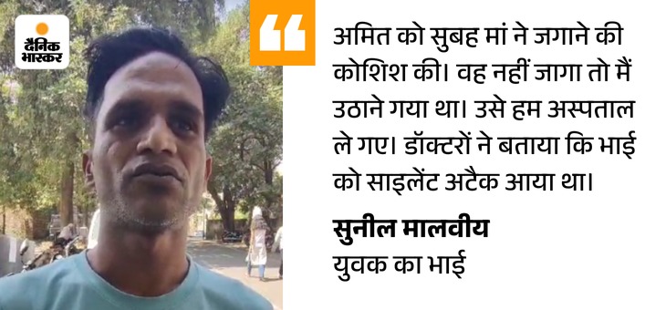 ਜੇ ਮੈਂ ਉੱਠਿਆ ਤਾਂ ਮਾਂ ਜਾਗਦੀ ਨਹੀਂ ਸੁਨੀਲ ਮਾਲਵੀਆ, ਮ੍ਰਿਤਕ ਦੇ ਅਮਿੱਟ ਦੇ ਵੱਡੇ ਭਰਾ ਨੇ ਦੱਸਿਆ ਕਿ ‘ਅਮਿਤ ਅਤੇ ਮੈਂ ਰਾਤ ਨੂੰ ਇਕੱਠੇ ਭੋਜਨ ਖਾਧਾ. ਫਿਰ ਉਹ ਸੌਂ ਗਿਆ. ਸਵੇਰੇ ਮੇਰੀ ਮਾਤਾ ਨੇ ਭਰਾ ਅਮੀਤ ਨੂੰ ਜਾਗਿਆ, ਪਰ ਉਸਨੇ ਨਹੀਂ ਉੱਠਿਆ. ਅਮਿਤ ਨੂੰ ਸ਼ਿਵਰਾਤਰੀ ਤਿਉਹਾਰ ਲਈ ਲਾਰਡ ਸ਼ੰਕਰ ਦੀ ਮੂਰਤੀ ਵੱਲ ਜਾਣਾ ਪਏਗਾ. ਜਦੋਂ ਉਸਨੇ ਜਾਗਿਆ, ਮੇਰੀ ਮਾਂ ਨੇ ਮੈਨੂੰ ਭਰਾ ਨੂੰ ਜਾਗਣ ਲਈ ਕਿਹਾ. ਮੇਰੇ ਜਾਗਰੂਕ ਹੋਣ ਤੋਂ ਬਾਅਦ ਵੀ ਉੱਠਿਆ ਨਹੀਂ ਸੀ. ਜਿਸ ਤੋਂ ਬਾਅਦ ਮੈਂ ਉਸ ਨੂੰ ਹਲੀਦੀਆ ਹਸਪਤਾਲ ਲੈ ਆਇਆ. ਡਾਕਟਰ ਨੇ ਕਿਹਾ ਕਿ ਉਸ ਦਾ ਚੁੱਪ ਹਮਲਾ ਹੋਇਆ ਸੀ.