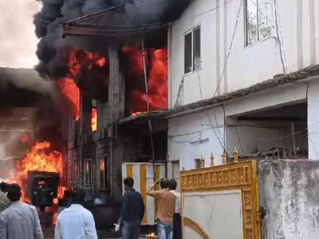 ਸ਼ਨੀਵਾਰ ਦੁਪਹਿਰ 1 ਵਜੇ ਗੋਵਿੰਦਪੁਰਾ ਉਦਯੋਗਿਕ ਖੇਤਰ ਵਿਚ ਅੱਗ ਲੱਗ ਗਈ. ਅੱਗ ਇੰਨੀ ਗੰਭੀਰ ਹੈ ਕਿ ਅੱਗ ਦੀਆਂ ਲਾਟਾਂ 40 ਫੁੱਟ ਉੱਚੇ ਹੋ ਗਈਆਂ ਹਨ. ਸਿਗਰਟ 10 ਕਿਲੋਮੀਟਰ ਦੂਰ ਤੋਂ ਦਿਖਾਈ ਦਿੰਦਾ ਹੈ.