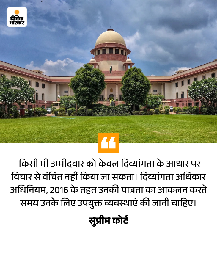 ਇਸ ਦੇ ਅਧਾਰ ‘ਤੇ, ਸੁਪਰੀਮ ਕੋਰਟ ਨੇ ਮੱਧ ਪ੍ਰਦੇਸ਼ ਨਿਆਂਇਕ ਸੇਵਾਵਾਂ ਦੇ ਨਿਯਮਾਂ ਨੂੰ ਰੱਦ ਕਰ ਦਿੱਤਾ, ਜਿਸ ਵਿੱਚ ਅੰਨ੍ਹੇ ਅਤੇ ਕਮਜ਼ੋਰ ਦਰਸ਼ਣ ਨਾਲ ਉਮੀਦਵਾਰਾਂ ਨੂੰ ਨਿਆਂਇਕ ਸੇਵਾ ਤੋਂ ਬਾਹਰ ਰੱਖਿਆ ਗਿਆ ਹੈ.