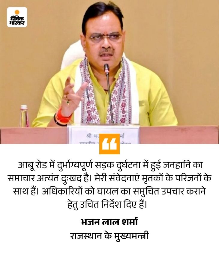 ਸਿਰੋਹੀ ਦੇ ਅਭੇਦ ਵਿੱਚ ਇੱਕ ਤੇਜ਼ ਸਪੀਡ ਕਾਰ ਇੱਕ ਟਰਾਲੀ ਨਾਲ ਟਕਰਾ ਗਈ. ਹਾਦਸੇ ਵਿੱਚ, 7 ਵਿੱਚੋਂ 6 ਮੈਂਬਰ ਦੀ ਮੌਤ ਹੋ ਗਈ. ਹਾਦਸੇ ਵਿੱਚ ਇੱਕ woman ਰਤ ਗੰਭੀਰ ਰੂਪ ਵਿੱਚ ਜ਼ਖਮੀ ਹੋ ਗਈ ਹੈ. ਜਲੌਰ ਦੇ ਕਾਰ ਸਵਾਰ ਸਵਾਰ ਅਹਿਮਦਾਬਾਦ ਤੋਂ ਪਰਤ ਰਹੇ ਸਨ.